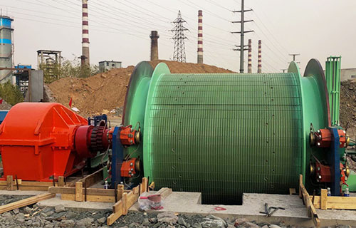 該提升機的主軸裝置有固定卷筒、活動卷筒(僅雙筒用)主軸、兩個軸承座、調繩機構(僅雙筒用)等部分組成,用來纏繞或釋放鋼絲繩。單筒提升機鋼絲繩為上出繩,雙筒提升機活動卷筒為下出繩,固定卷筒為上出繩,卷筒上裝有襯木。